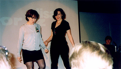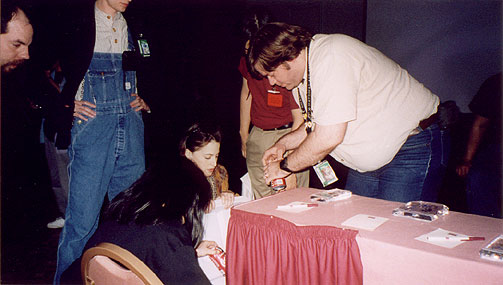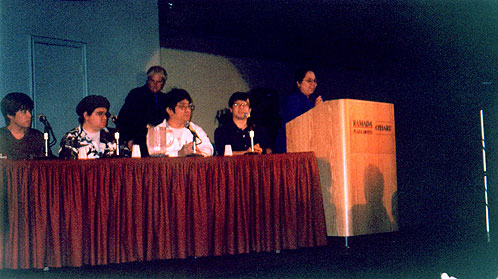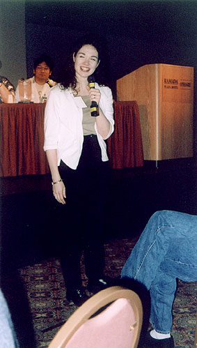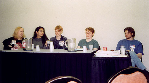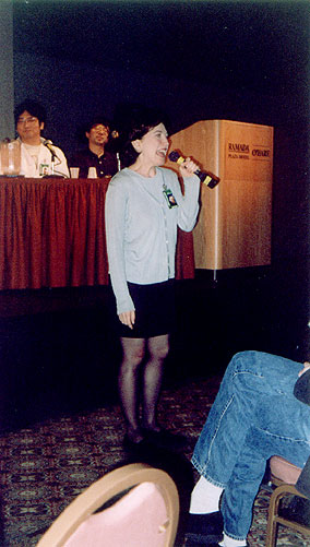 Here we have Leah Applebaum, voice of Nanami from Revolutionary Girl Utena, and Lisa Ortiz, the voice for Lina Inverse of Slayers and Deedlit from Lodoss War. |