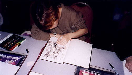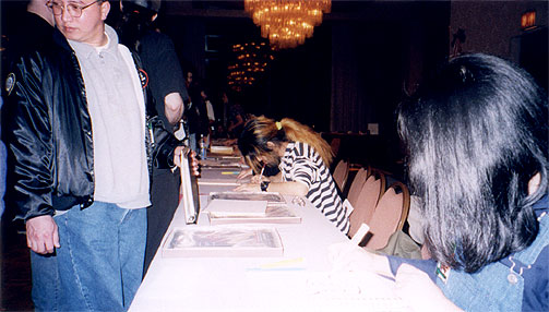 More of the Guest Reception. Daiken Yoko-o, Hirotaka Okuma and Tsukasa Kotobuki sketching away. |