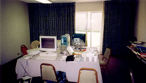 And finally, here's the reason why I don't get outr as much as the rest of the world. This is a shot of the empty Newsroom where the at-con publications happen. Just a bit nicer than my hotelroom/newsroom from last year. |