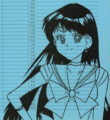 Rei - Pict of Sailor Mars drawn in Sapang Palay, Bulacan, Philippines. This was another pict that was drawn in a not-so-normal place, on the back of a planner page. It's been cleaned up and colored.